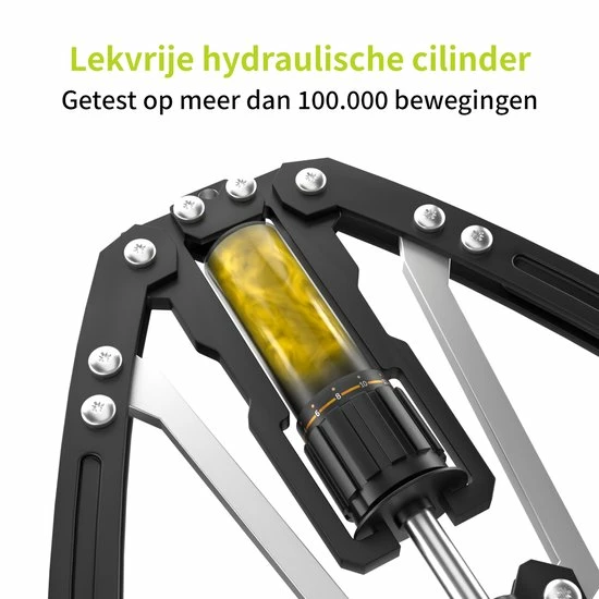 De lekvrije hydraulische cilinder, die duurzaamheidstests van over 100000 bewegingen moeiteloos overwon, scoort kwalitatief veel beter dans soortgelijke spiertrainers.