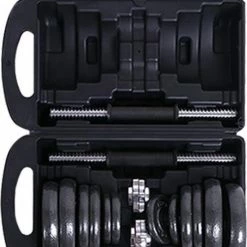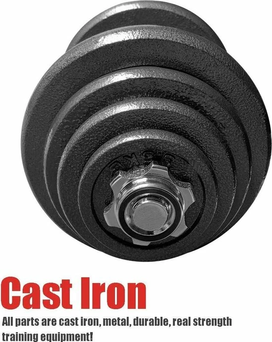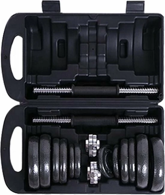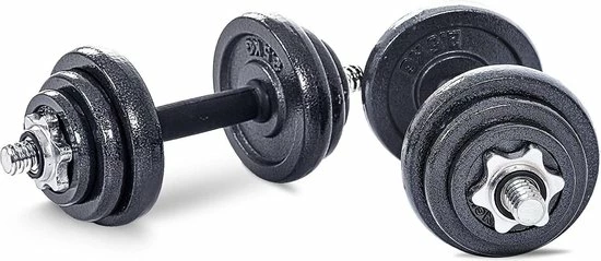 Handig, want daardoor kun je zelf het ideale gewicht bepalen door de gewenste halterschijven aan de dumbbellstang te bevestigen. De schroefsluiters zorgen ervoor dat de gewichten stevig blijven zitten. Wel zo prettig en veilig. De halterset is vanwege de ruime keuze in gewichten zowel geschikt voor de beginnende als ervaren sporter.
