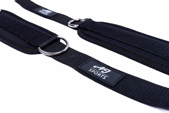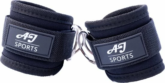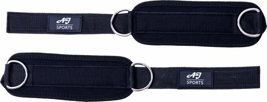 De AJ-Sports Ankle straps tillen jouw workout naar een hoger niveau. Ze zijn ideaal te gebruiken bij verschillende kabel machines. Deze straps zijn perfect voor kabeloefeningen gericht op de been en bil spieren. Deze straps hebben een comfortabele neopreen padding die schaaf en snijwondjes voorkomt op de enkels. De straps kunnen makkelijk afgesteld worden door middel van het klittenband systeem in de lus sluiting. Zo kun je tussen de oefeningen door de straps makkelijk iets losser zetten.