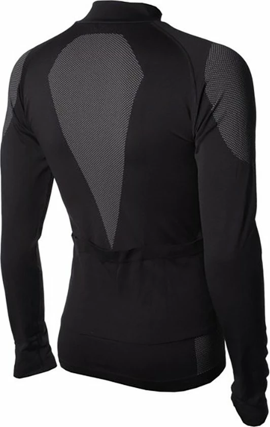Seamless kledij is op een speciale manier geweven zodat er nagenoeg geen naden zijn (seamless). Door deze manier van constructie ontstaat er compressie (compression sportswear) dat de spieren warm houd en kan zorgen voor een betere prestatie. Vervaardigd van Vochtregulerend compression materiaal, lange mouwen, korte rits met garage; beschermt de kin, met achterzak die in 3 compartimenten is verdeeld.