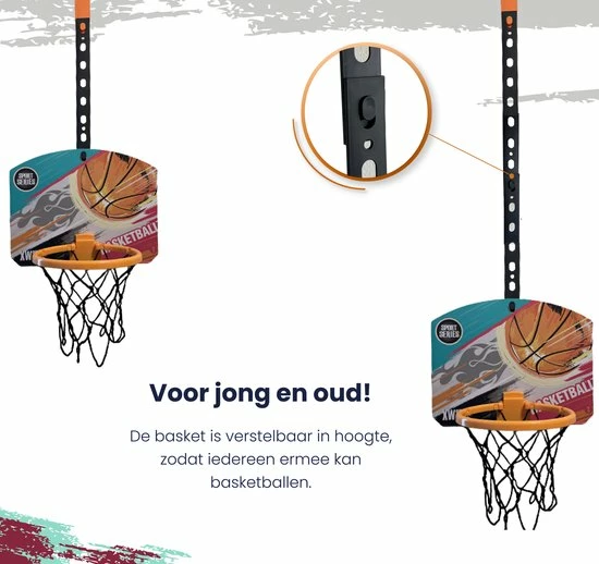 - Leuk voor jong en oud: De basket is verstelbaar in hoogte, zodat iedereen ermee kan basketballen. Daag jezelf uit en hang de basket steeds hoger!