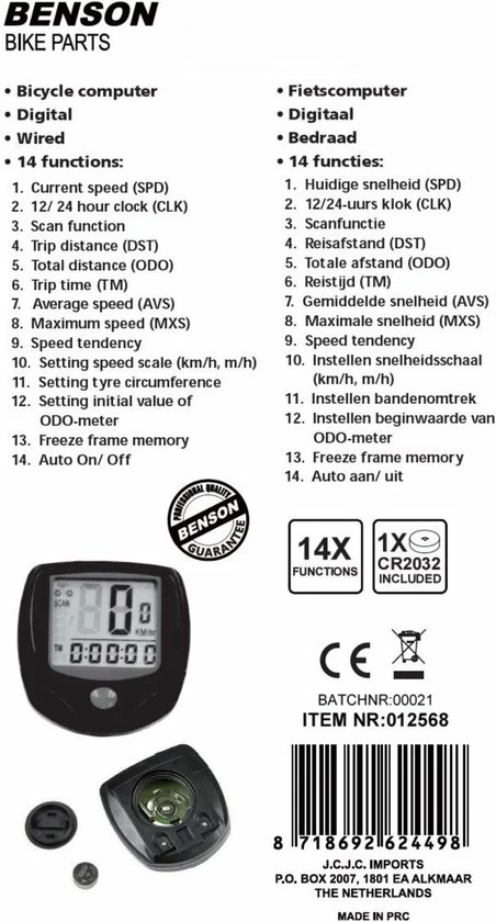 Als je van fietsen houd dan kan een fietscomputer natuurlijk niet aan jouw uitrusting ontbreken. Deze fietscomputer van Benson heeft wel 14 verschillende functies en heeft een groot Lcd-display dat gemakkelijk af te lezen is.