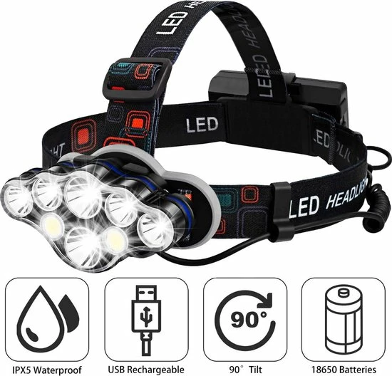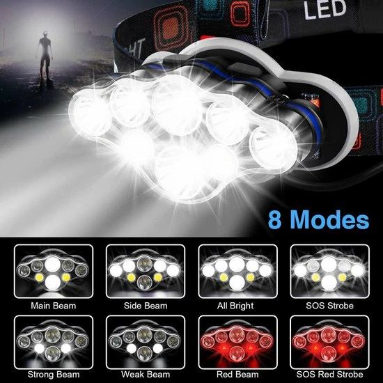 Deze professionele militaire hoofdlamp met 8 ultrakrachtige LED-koplampen is USB oplaadbaar, waterdicht, compact met verstelbare hoofdband. De set wordt geleverd inclusief USB-oplader, twee krachtige oplaadbare batterijen en is dus meteen klaar voor gebruik. Dit nieuwe 2022 model hoofdlamp is uitermate geschikt voor veel outdoor action activiteiten als: hardlopen, fietsen, kamperen en vissen. Bestel hem nu meteen en profiteer van de uitstekende service!