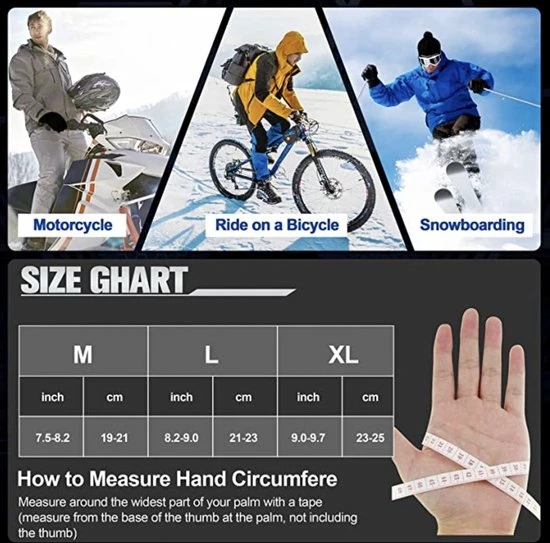 De handrug bestaat uit waterdichte stof. De handschoenen houden je handen droog bij vocht (motregen, maar niet bij hevige regen) en sneeuw. * Houd er rekening mee dat de stof van de schaal waterdicht is, maar niet geschikt is om onder te dompelen in water, omdat de naden, duim en handpalm niet waterdicht zijn.