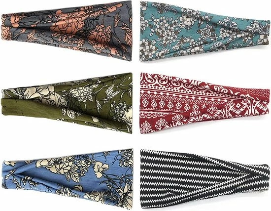 Boho Hoofdbanden voor Vrouwen Mode – Retro Brede Haarbanden – Yoga Workout Hoofdbanden – Elastische Haaraccessoires Band – 6 Pack