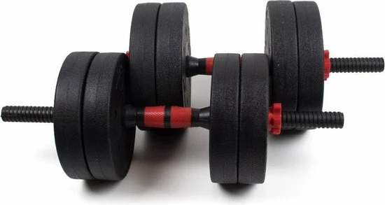 Door middel van deze fitness gewichten set trainen je waar en wanneer je zelf wilt, zonder dat je naar de sportschool, gym of georganiseerde sport hoeft te gaan. Op ieder moment van de dag kun je op een laagdrempelige manier thuis, in de tuin of in het park een workout/ training gaan doen. Deze dumbbellset / halterset bestaat uit de volgende fitness gewichten met accessoires: