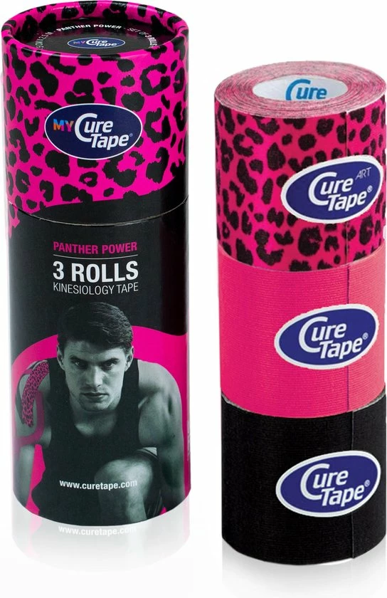 De Panther Power Set bevat een rol CureTape – zwart, pink en leopard (5 cm x 2,5 m) kinesiologie tape