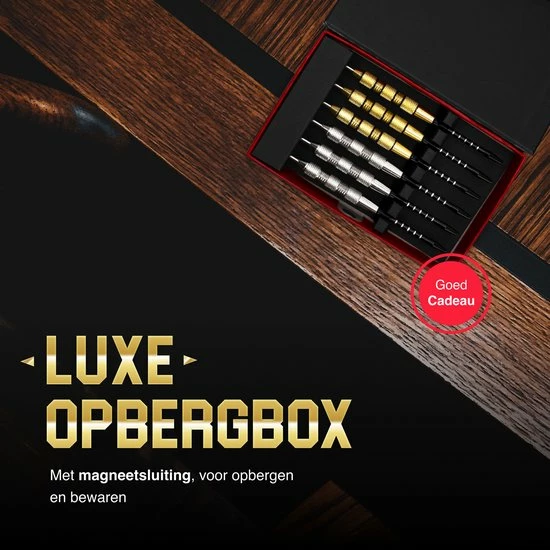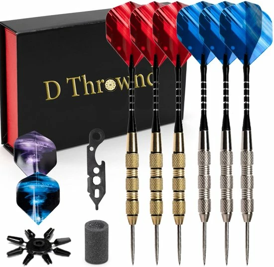 De D Thrownd Dartpijlen set is extra uitgebreid en van alles voorzien voor uren speelplezier. Zo til je spel naar een hoger niveau dankzij pijlen van een optimaal gewicht voor extra accurate worpen, en hou je je pijlen altijd scherp en spel klaar met de multifunctionele tool en sharpener. Ontkroon jij de huidige kampioen van je vriendengroep? Met deze set maak je zeker een goede kans!