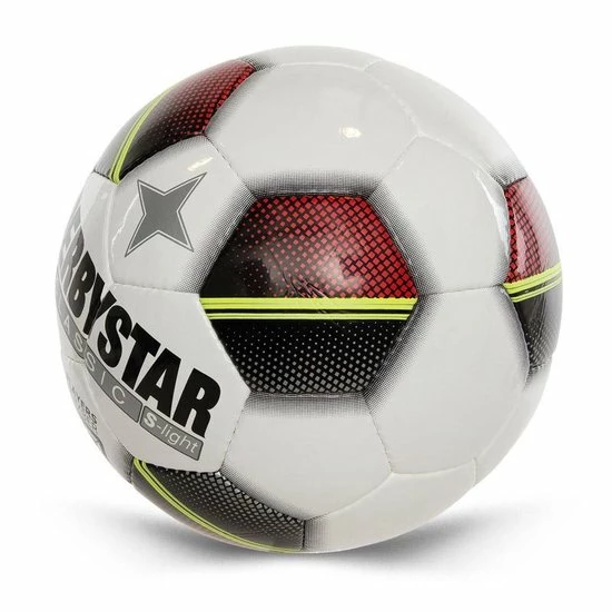 De Derbystar Classic TT is een klassieke Derbystar bal en ons best verkochte model. Deze super light-uitvoering (290 gram) is speciaal geschikt voor de jeugd O7 t/m O10. De handgestikte bal voldoet aan alle KNVB-richtlijnen voor jeugdvoetballen. Vervaardigd uit duurzaam PU-materiaal, dat aanvoelt als leer maar niet de nadelen heeft van leer. De uitstekende, stabiele vluchteigenschappen blijven ook bij lagere temperaturen behouden. Let op: de bal is beschikbaar in maat 3 (aanbevolen voor O7) en 4 en 5 (aanbevolen voor O8-O10). Van balmaat 5 zijn er drie designs. Design (‘maat’) 1 is de witte bal met 8 x 1 rode vlakken. Design 2 heeft 4 x 2 rode vlakken en Design 3 heeft 4 x 3 rode vlakken. Dankzij de verschillende designs zijn de ballen van verschillende elftallen uit elkaar te houden.