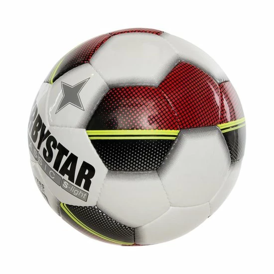 De Derbystar Classic TT is een klassieke Derbystar bal en ons best verkochte model. Deze super light-uitvoering (290 gram) is speciaal geschikt voor de jeugd O7 t/m O10. De handgestikte bal voldoet aan alle KNVB-richtlijnen voor jeugdvoetballen. Vervaardigd uit duurzaam PU-materiaal, dat aanvoelt als leer maar niet de nadelen heeft van leer. De uitstekende, stabiele vluchteigenschappen blijven ook bij lagere temperaturen behouden. Let op: de bal is beschikbaar in maat 3 (aanbevolen voor O7) en 4 en 5 (aanbevolen voor O8-O10). Van balmaat 5 zijn er drie designs. Design (‘maat’) 1 is de witte bal met 8 x 1 rode vlakken. Design 2 heeft 4 x 2 rode vlakken en Design 3 heeft 4 x 3 rode vlakken. Dankzij de verschillende designs zijn de ballen van verschillende elftallen uit elkaar te houden.