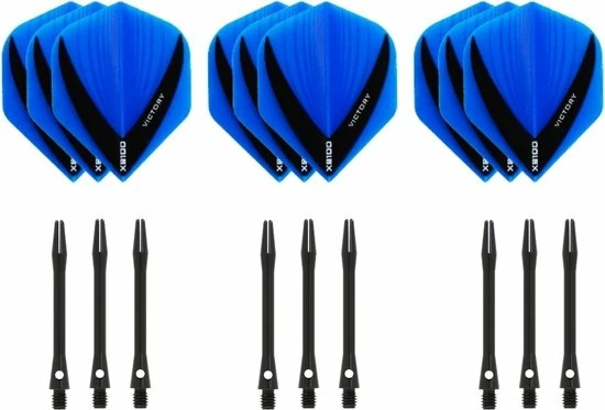 Totaal in deze set zitten in totaal 3 sets aluminium darts shafts, totaal 9 stuks dus en 3 sets stevige darts flights, 9 stuks dus. Wat een totaal van wel 18 stuks opleverd!!!