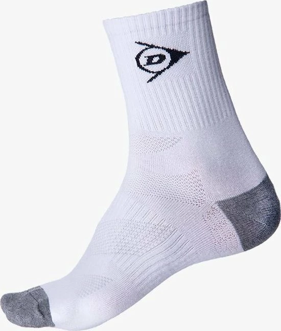 Deze witte Dunlop Heren Performance Sokken met grijze details hebben een goede pasvorm en ondersteunen je voeten optimaal. Aerodry technologie zorgt voor een uitstekende vochtafvoer zodat je voeten langer droog blijven. Zowel de tenen als de hak van de sok zijn extra verstevigd. Het voetbed van de sok is tevens dikker waardoor schokken beter worden opgevangen.