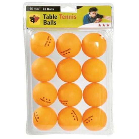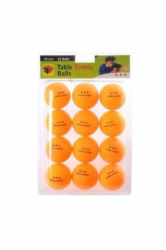 Tafeltennisballen per 12 verpakt in een blister. In de kleur oranje, diameter 40 mm, 3 sterren.