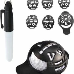Herkenbaar dat je aan het zoeken bent naar je golfbal? Eindelijk heb je een bal gevonden en twijfel je of dit jouw bal is? Met deze golfballenmarker kun je je golfballen gemakkelijk voorzien van streepjes en/of figuurtjes om je bal te herkennen, maar ook om beter de richting te bepalen. Door het oplijnen van je golfbal bij het putten vergroot je je scoringskans aanzienlijk!