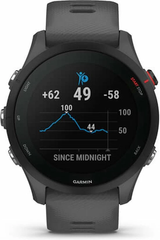 Dankzij het slanke ontwerp en het gewicht van 49 vergeet je bijna dat je Forerunner® 255 draagt, zelfs als je slaapt.