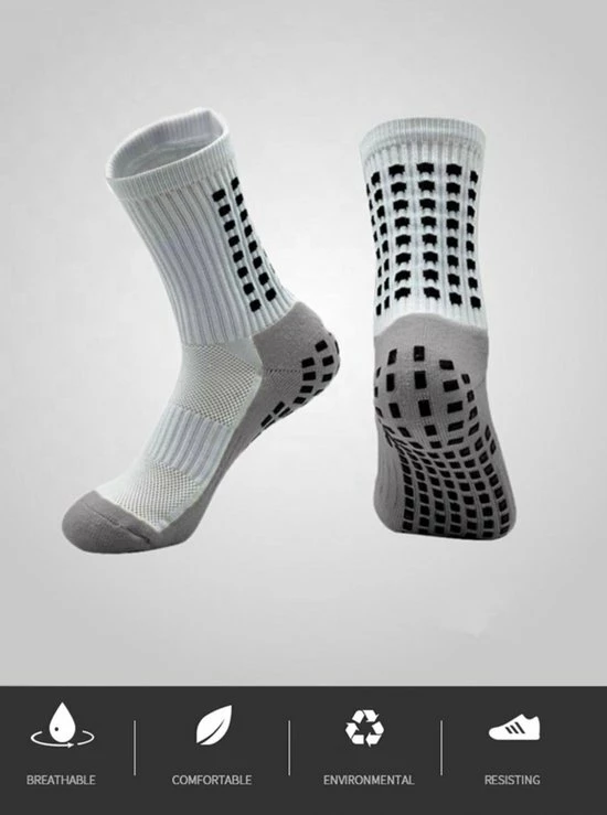 Waarom grip sokken?Als allereerst zitten de gripsokken enorm comfortabel en luchten ze goed door. In combinatie met de grippads aan de onderkant lijkt het alsof je één bent met jouw schoen. Hierdoor wordt voorkomen dat je glijdt in jouw schoenen wat op zijn beurt blaren voorkomt. Ook zorgen de grip sokken ervoor dat blessures voorkomen worden. Dit komt doordat de gripsokken zorgen voor stabiliteit. Dit zorgt voor betere ondersteuning en dus voorkomt het enkel- en voetblessures. Kortom, enorm veel voordelen om als sporter de gripsokken te dragen!