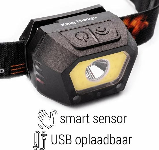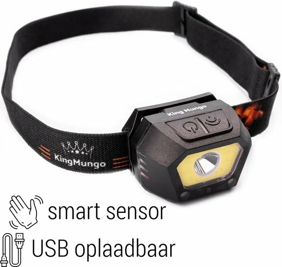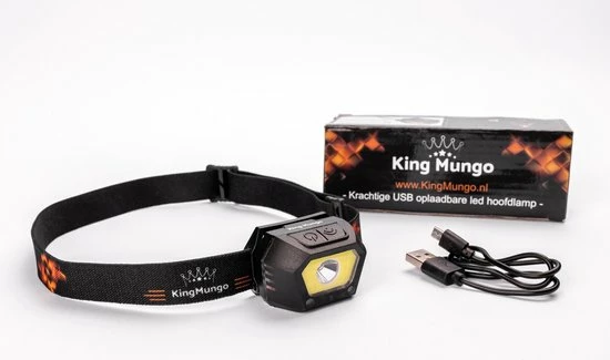Hoofdlamp LED zwart USB Oplaadbaar Waterdicht met Bewegingssensor, geeft super veel licht en gaat heel lang mee (met oplaadbare batterij). Hoge kwaliteit en krachtige King Mungo KMHL033 led hoofdlamp, lichtgewicht en geschikt voor iedere activiteit. Met wit en rood licht. Bevat de nieuwste krachtige leds die veel licht geven: maar liefts 300 lumen!