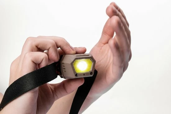 Deze LED hoofdlamp heeft naast de normale aan/uit knop maar ook een handige bewegingssensor. In deze stand kun je de lamp aan en uit zetten door je hand ervoor te bewegen.
