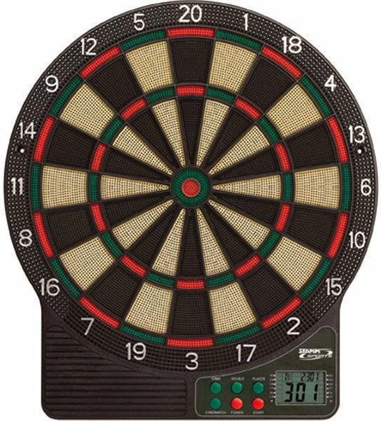 Electronisch softtip dartboard Economy is een leuk en veilig alternatief voor een standaard dartbord. Elektronisch darten is een veilig alternatief: de darts hebben een stompe plastic punt in plaats van een stalen punt. Daarbij kun je lekker lui darten, want je hoeft de scoretelling niet bij te houden, dit gaat automatisch. Bovendien kun je met elektronisch darten veel verschillende spelvariaties spelen, op verschillende spelniveaus. De economy heeft 21 verschillende spelen en 65 niveaus. Je kan tot 8 spelers laten meespelen! Inclusief geluids- en lichteffecten en een gecomputeriseerde speaker (one hondred and eieieieeightyyyyyyy!!).