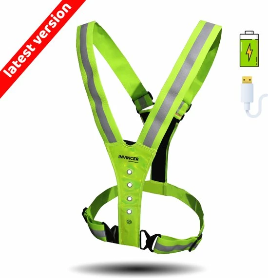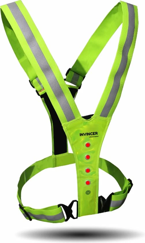 Dit hardloopharnas of ook wel hardloop led vest van Invincer (by ReflectiveSport) is dé hardloop accessoire in het hardloop verlichting assortiment. Het heeft krachtige witte verlichting voorop en rode verlichting achterop zodat u fantastisch goed zichtbaar bent voor uw medeweggebruikers tijdens uw avondloopje. Je krijgt vast en zeker complimenten over je zichtbaarheid. Diverse hardlooptrainers gebruiken dit vest/harnas ook in loopgroepen en adviseren dit vest aan de deelnemers. De verlichting voor en achter zijn afzonderlijk te bedienen. Het hardloop led vest is ideaal wanneer je in de avonduren of in de vroege morgen gaat hardlopen en je beter gezien moet worden door auto’s, voetgangers en fieters. Het is ook geschikt voor op de fiets maar is natuurlijk geen vervanging van je fietsverlichting.