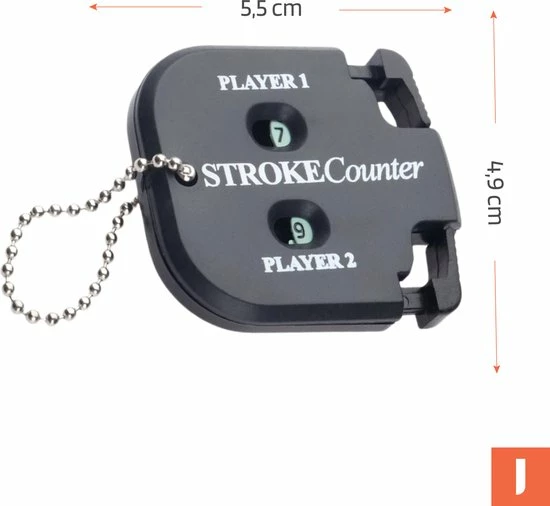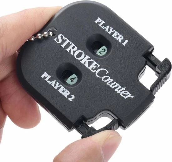 Door de ophang ketting kun je deze handige golf accessoire eenvoudig aan je golftas of broek hangen. De golf score teller is te gebruiken voor twee personen op 9 holes en voor één persoon op 18 holes.