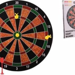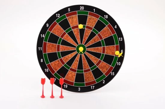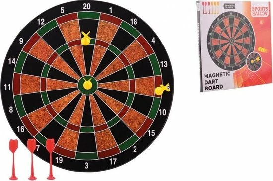 Met dit magnetische dartbord van Sports Active speel jij een potje darts, zonder het gevaar van scherpe punten. De dartpijlen zijn namelijk voorzien van een sterke magneet. Dit maakt het dartspel ook geschikt voor kinderen. Je hoeft niet bang te zijn voor verwondingen, maar ook je muren en vloer blijven vrij van beschadigingen! Gooi de pijlen van een gemiddelde afstand richting het bord en ze blijven moeiteloos hangen. Het dartbord is dankzij de gaten aan de achterkant eenvoudig te monteren op elke gewenste plek. Je ontvangt het magnetische dartbord inclusief drie rode en drie gele dartpijlen.