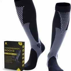 Heb je last van krampen, vermoeide en pijnlijke benen tijdens het sporten zoals hardlopen, fietsen, wandelen en fitness? Dan is deze compressiekousen een ideale sokken voor jou. De compressiekousen bieden verlichting tegen deze klachten. De sokken bevorderen de bloedcirculatie in de benen door een lichte druk 20 tot 30 mmHg op de voeten en benen te geven wat zorgt voor een betere prestaties en vermindering van klachten zoals spierpijn, zwellingen, spataderen, en kramp in de kuiten. De sokken voelen zacht aan en is gemaakt van ademende vezels die ervoor zorgt voor draagcomfort.