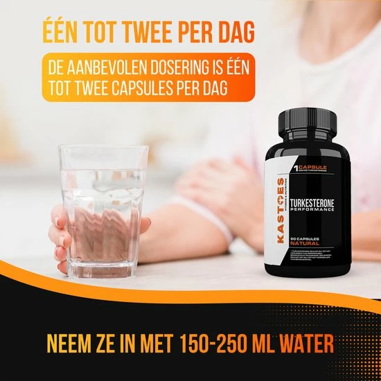 Til je training naar een hoger niveau met de Turkesterone van Kastoes! Dit ijzersterke supplement is de natuurlijke vervanger voor anabolen. Het heeft geen vervelende en schadelijke bijwerkingen. Kastoes raadt aan om dagelijks één tot twee capsules Turkesterone met 150-250 ml water in te nemen.