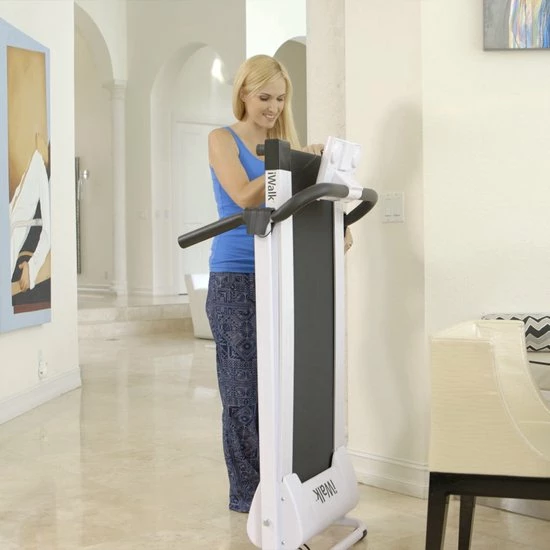 iWalk is de nieuwe revolutie in loopbanden! Gemakkelijk op te vouwen en in een paar seconden op te bergen. Hij weegt slechts 25 kilogram en is dankzij het praktische wielsysteem overal inzetbaar.