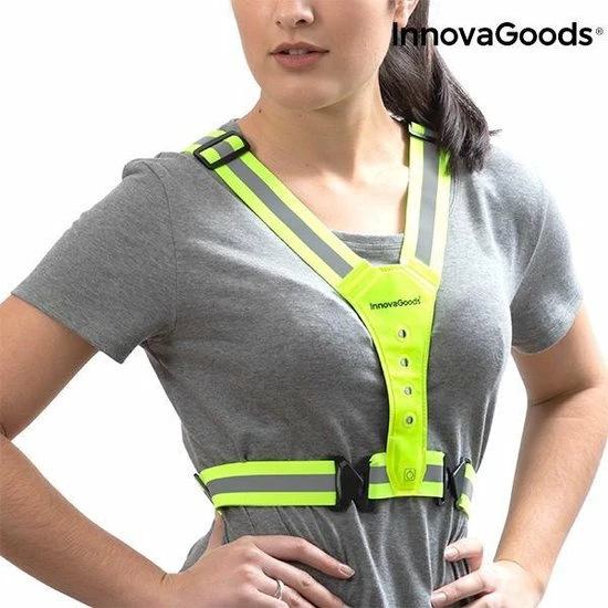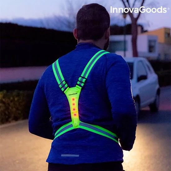 sport LED reflecterende hardloopvest! Zeer nuttig voor mensen die ‘s avonds sporten (hardlopen, fietsen, enz.), omdat het u zichtbaar maakt en risico minimaliseert. Het is ook perfect om andere nachtelijke activiteiten veilig uit te voeren.