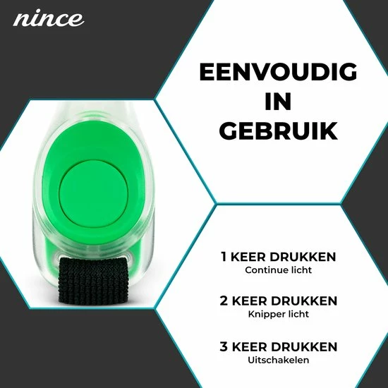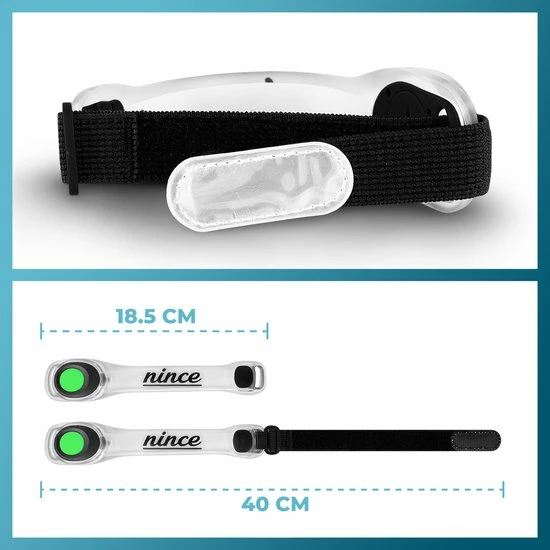 Zorg ervoor dat je veilig bent tijdens het hardlopen of andere activiteiten in het donker! Met de hardloop verlichting van Nince ben je zichtbaar voor andere weggebruikers. De krachtige LED verlichting verlicht je directe omgeving goed, hierdoor zie je waar je loopt en voorkom je blessures.
