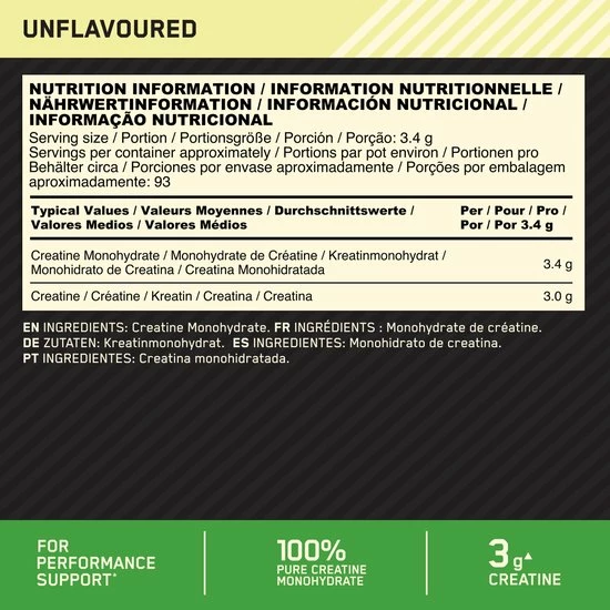 Optimum Nutrition Micronized Creatine Powder – Stimuleert kracht, prestaties en spiergroei