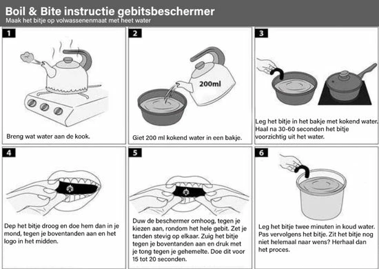Let op: Gebitsbeschermer lijkt na levering mogelijk te klein of zelfs een kindermaat dit omdat de gebitsbeschermer op maat gemaakt moet worden. De gebitsbeschermer is eenvoudig op maat te maken door de BOIL & BITE technologie. Hoe dit te doen is te vinden in de laatste productafbeelding en in de meegeleverde bijsluiter.