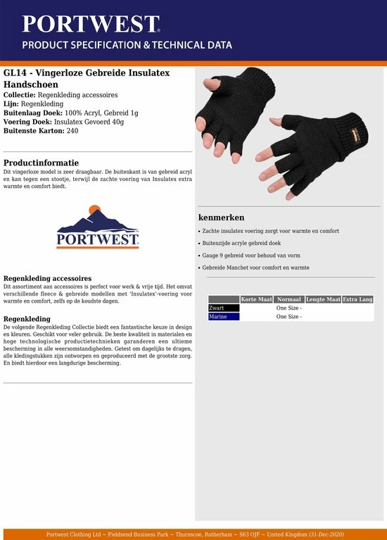 Dit vingerloze model is zeer draagbaar. De buitenkant is van gebreid acryl en kan tegen een stootje, terwijl de zachte voering van Insulatex extra warmte en comfort biedt.