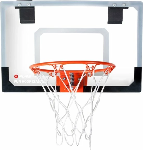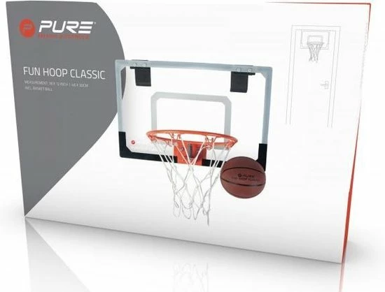 De Pure2Improve Fun Basketbal Set Classic is leuk voor op kantoor of op de kinderkamer. Dit bord heeft de klassieke mini hoop afmeting van 46 x 30 cm. De ring heeft een diameter van 9inch (23cm). Het bord kan eenvoudig aan iedere deur bevestigd worden met de bijgeleverde haken die over de deur heen gehangen moeten worden.