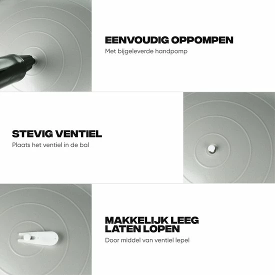 Controleer na het volledig oppompen de diameter van de bal en je zithouding.