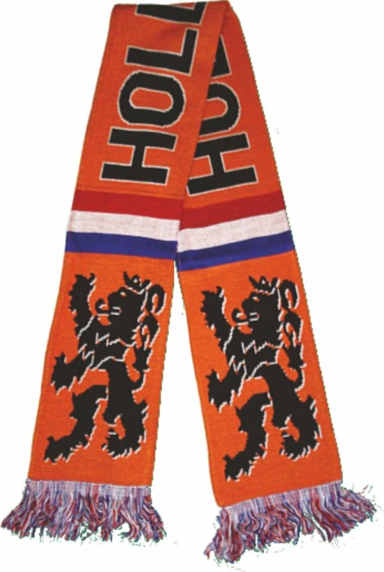 Oranje supporterssjaal met de tekst Holland met leeuw en rood-wit-blauwe vlag.