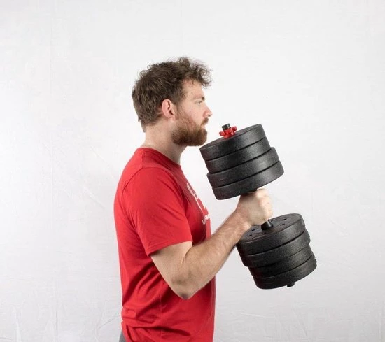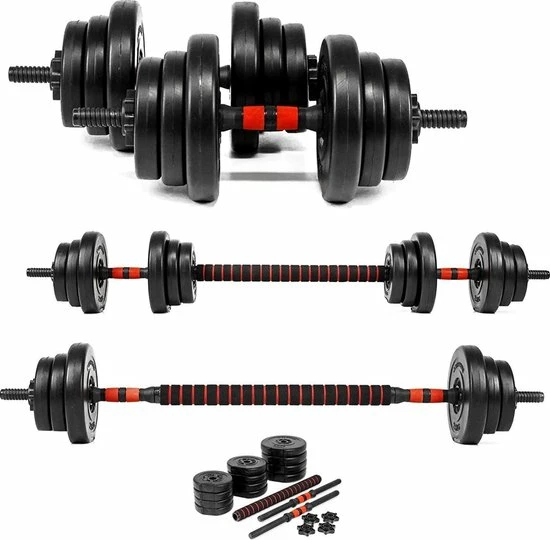 Deze multifunctionele dumbellset van 20kg is dé basis van jouw fitness uitrusting. De breed inzetbare dumbells zijn geschikt voor het trainen van jou lichaam voor beginnende en gevorderde sporters op professionele kwaliteit. De zwarte halterset zijn d.m.v. de verwisselbare gewichten eenvoudig te verstellen tot 20kg. De professionele dumbells kunnen ook gebruiksvriendelijk samengevoegd worden om een stevige halter stang (20kg) te creëren. De vele mogelijkheden maken het mogelijk om (bijna) iedere spiergroep snel en effectief te trainen.