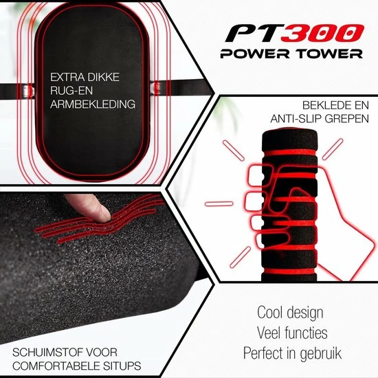 De PT300 is een echt veelzijdig multifunctioneel apparaat dat alle spiergroepen van het bovenlichaam traint. In je eigen huis of op kantoor kan je verschillende oefeningen voor arm-, schouder-, rug-, borst- en buikspieren doen. Het PT300 dipstation ondersteunt oefeningen zoals lussen, power ropes, pull-ups, buikspieroefeningen, dips, push-ups en sit-ups. De optrekstang is flexibel instelbaar.