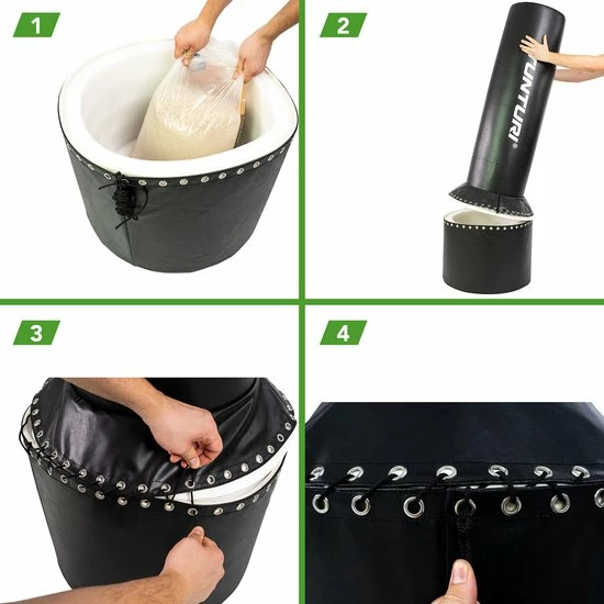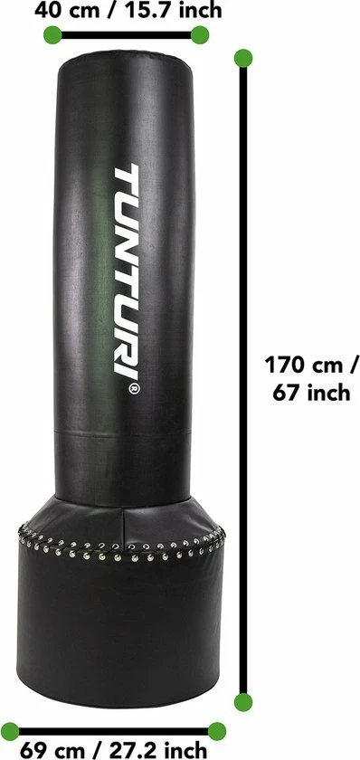 In de voet van deze bokszak kan ongeveer negentig kilo zand. Met dat gewicht staat de bokszak stevig en stabiel, hoe hard je ook stoot of trapt. De zak zelf is van PVC. Dit materiaal heeft een groot absorberend vermogen waardoor stoten en trappen minder belastend zijn voor je gewrichten. Bovendien veert PVC eenvoudig terug, waardoor de staande bokszak zijn vorm houdt.