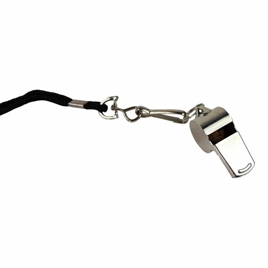 Deze grote, chroom scheidsrechtersfluit is ideaal voor het leiden van wedstrijden op amateurniveau. Dankzij het luide en heldere fluitsignaal hoort iedere speler op het veld jou duidelijk. De fluit wordt geleverd met een zwart koord.