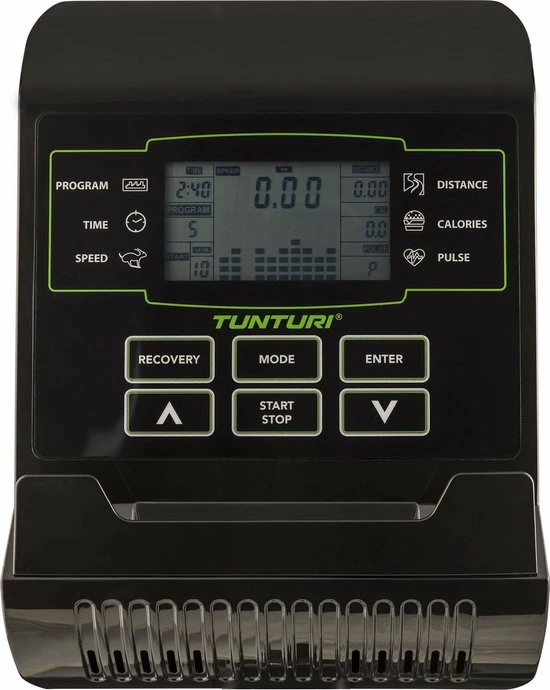 • Monitor met weergave van afstand, snelheid, tijd en calorieverbruik