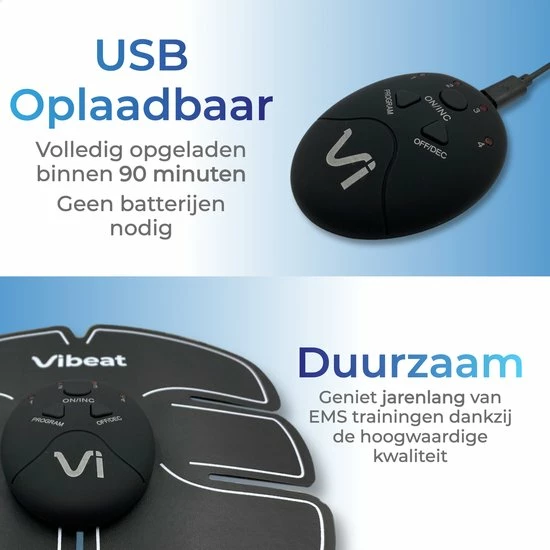 Deze revolutionaire EMS-trainer zorgt ervoor dat je een mooie en strakke buik gaat krijgen wanneer je het consistent gaat gebruiken. Dit doe je met de grote EMS-trainer. De overige twee trainers kun je inzetten om je armen en/of benen te trainen! Onze EMS-trainer is USB oplaadbaar, dit zet ons dik boven andere elektrische buiktrainers waarvoor je wel batterijen moet aanschaffen. Dit kost jou weer extra moeite, energie en geld en daarnaast is het allesbehalve milieuvriendelijk! Verder is deze EMS-trainer van hoogkwalitatief materiaal gemaakt. Dit materiaal is licht en stevig waardoor het lang meegaat.