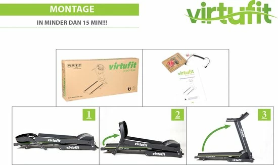 Gemakkelijk en zonder gedoe. De VirtuFit TR-100 loopband is grotendeels voorgemonteerd in de doos. De laatste handelingen die erbij komen kijken zijn eenvoudig, kosten weinig tijd en worden duidelijk uitgelegd in de bijgeleverde Nederlandse én Engelse handleidingen. Als je de TR-100 in huis haalt, kun je dezelfde dag nog beginnen met hardlopen